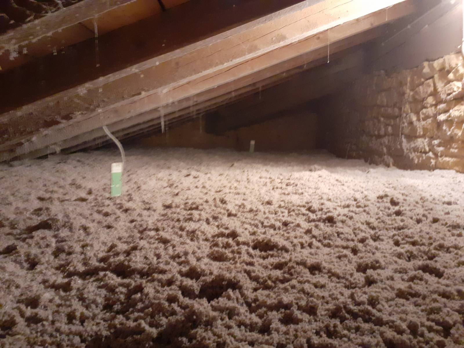 Stéphane MARTINEZ isole les combles perdus en Ouate de cellulose sur tout l'Ouest lyonnais. Le chantier est sur la commune de Lentilly prêt de L'Arbresle.