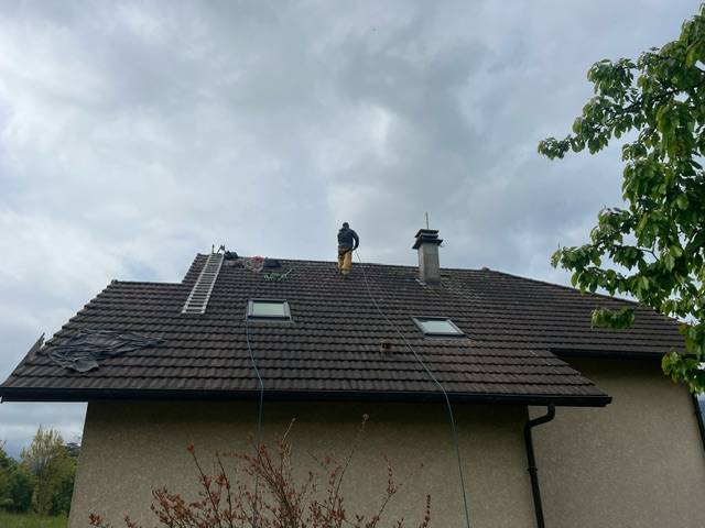Martinez Stéphane à effectué sur la commune de Charbonnières-les-Bains pour un Lavage et traitement de la toiture. Il est nécessaire d'entretenir sa toiture pour que l'humidité ne rentre pas dans la tuile pour éviter que le gel ne les cassent. Nous traitons les tuiles avec un imperméabilisant. Avant de vouloir changer votre toiture demander nous un devis gratuit